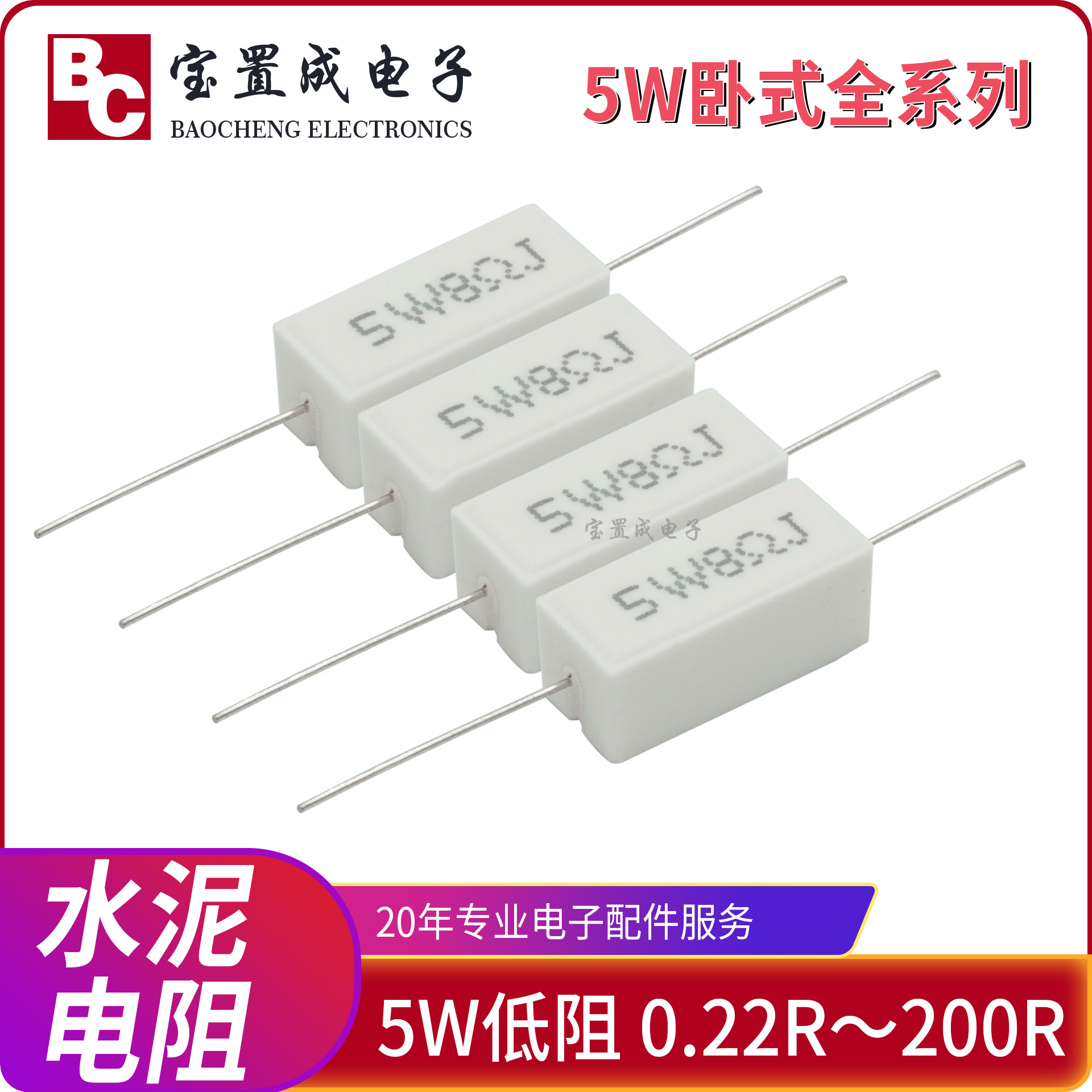 Resistor semen horizontal 5W 1R~2KR resistor keramik horizontal resistor lengkap tersedia dalam stok