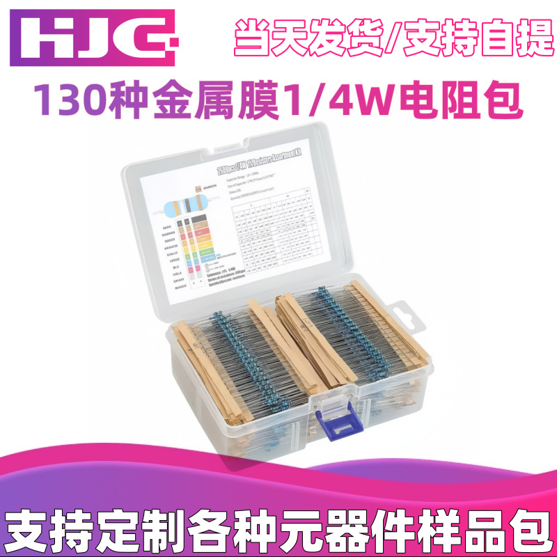 Kotak 130 Jenis yang Umum Digunakan Seri Penuh Resistensi 1/4W 0.25W Film Logam Resistensi Tas 2600PCS