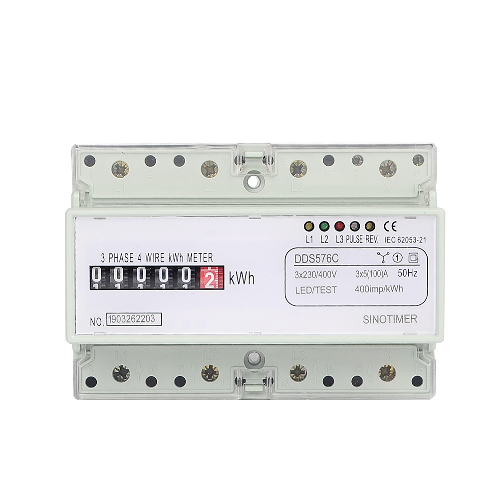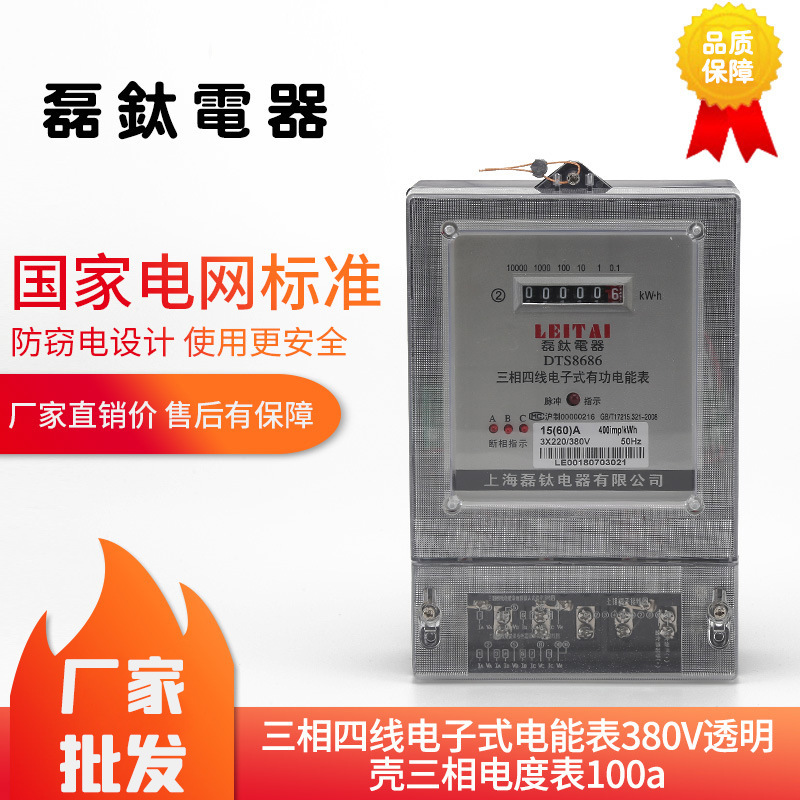 Pengukur listrik tiga fase, pengukur energi elektronik 380V cangkang transparan tiga fase pengukur listrik 100A fungsi meteran listrik