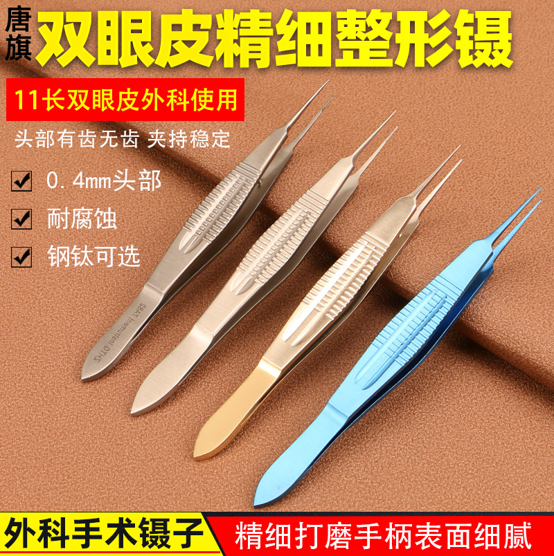 Pinset mikro oftalmik, Pinset platform bergigi, instrumen Stainless steel mikro, alat operasi kelopak mata ganda, Pinset plastik