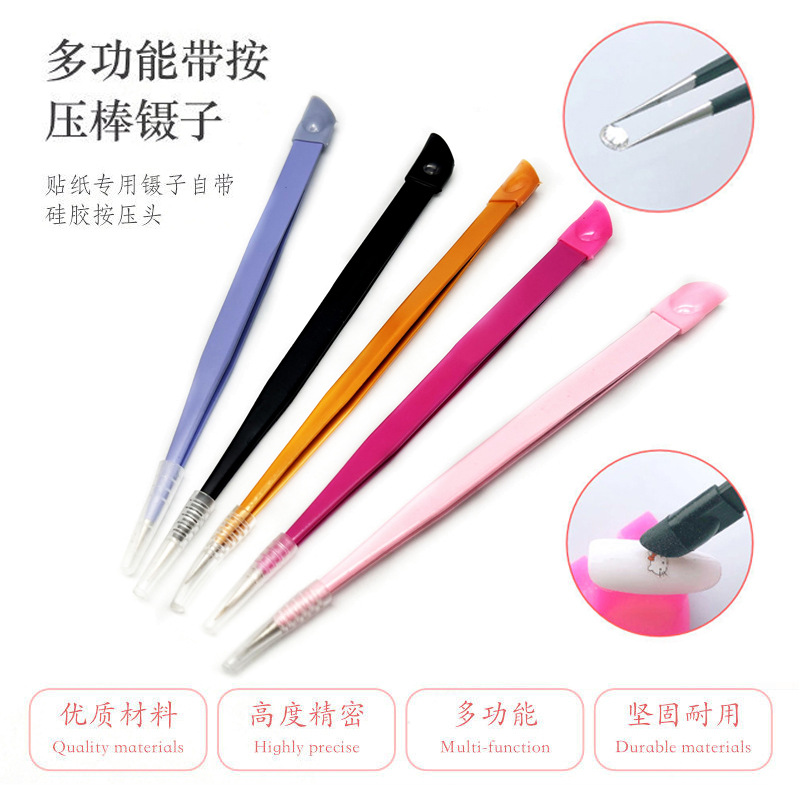 Alat manikur pinset multi-fungsi dengan kepala silikon menekan tongkat stiker perhiasan berlian berkepala ganda klip tangan alat akun