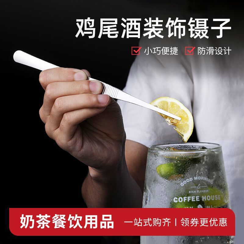 Pinset runcing baja tahan karat klip penjepit daun mint dipertebal klip dekorasi koktail bar jepit