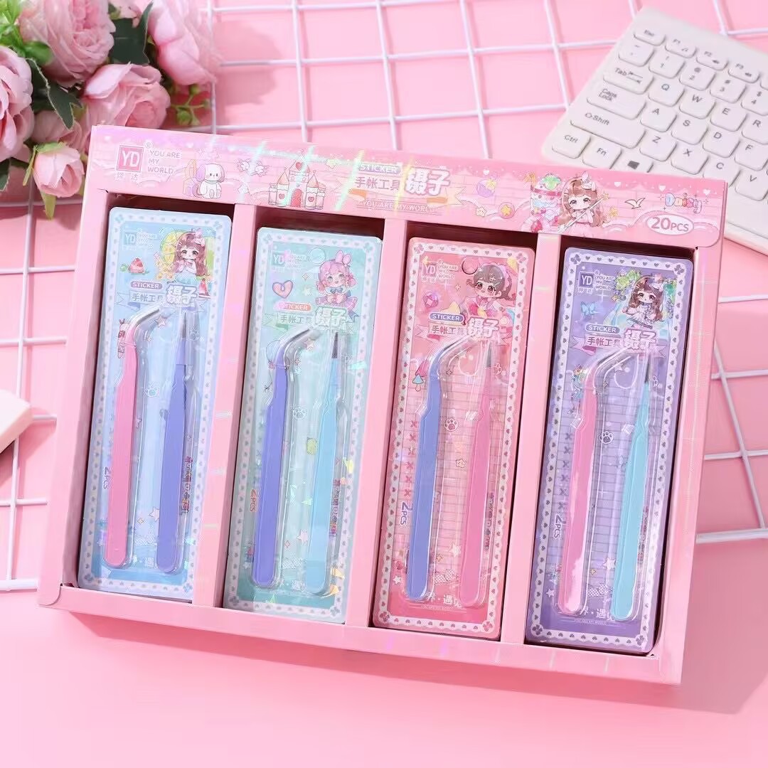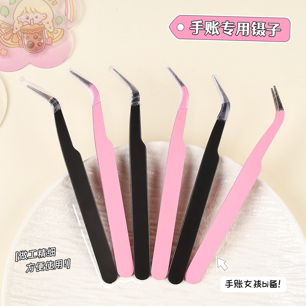Pinset khusus akun tangan macaron Stainless steel alat stiker siswa diy penjepit akun tangan siku lurus