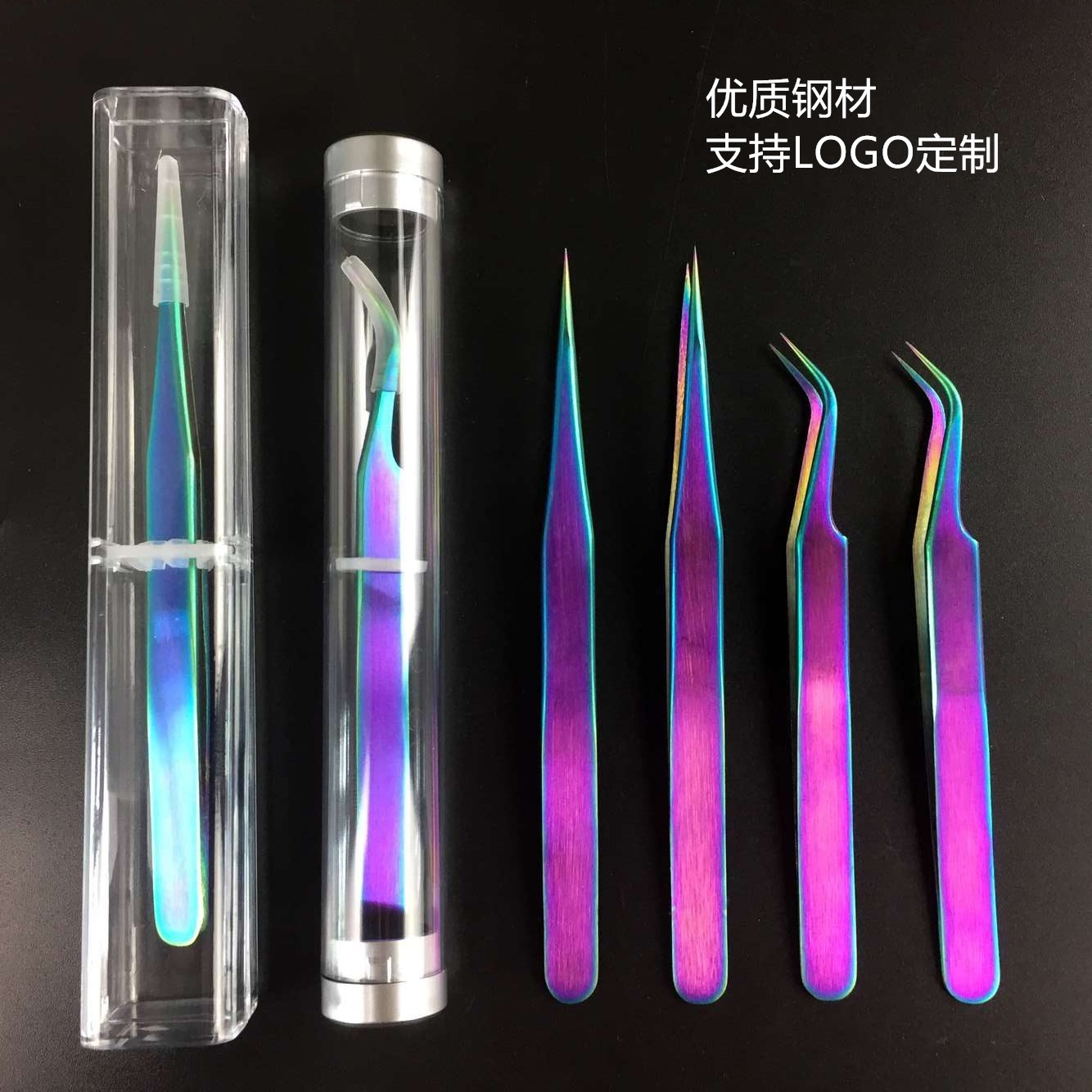 Pinset kemasan kotak penyimpanan pinset, kotak persegi tabung anti debu kecantikan bulu mata silinder