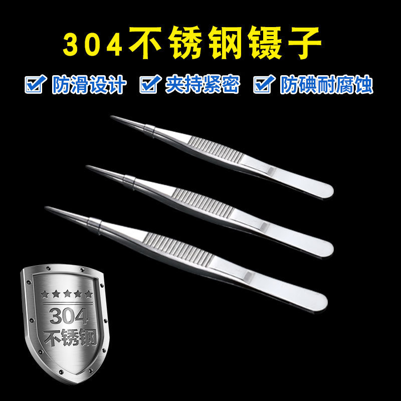 304 Pinset Medis Tebal Pinset Anti-Iodophone Penjepit Pinset Anti-Slip Kepala Bulat dengan Gigi