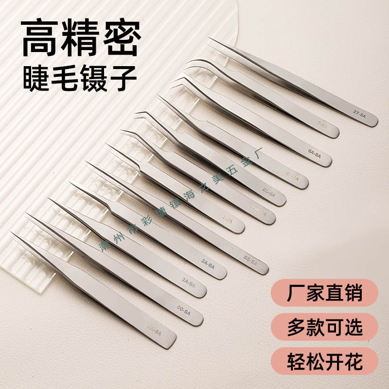 Pinset Baja tahan karat presisi SA okulasi palsu mulut elang 7 kata klip ponsel mesin bongkar pasang alat manikur kecantikan pinset bulu mata