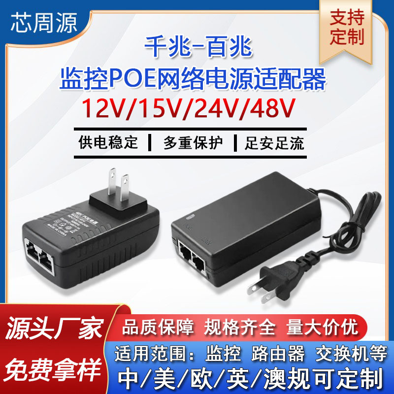 Pantau POE Catu Daya 12V1A 15V 24V 48V0.5A Gigabit Switch Adapter Daya Jaringan