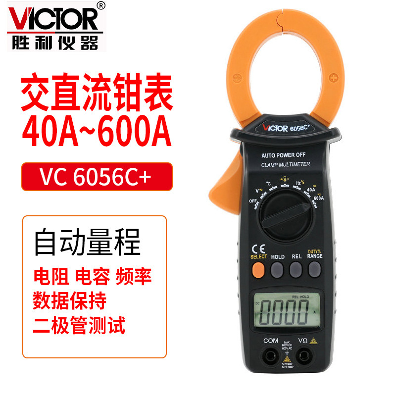 Victory meteran jepit digital VC6056C + AC/DC 600A, pengukur kapasitas/frekuensi/suhu