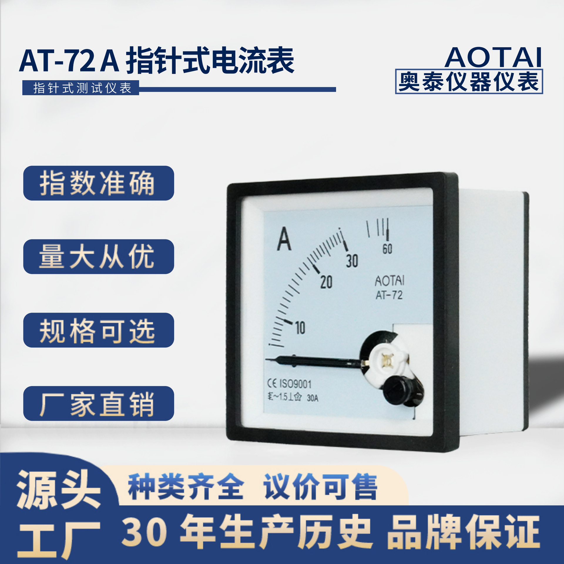 Produsen grosir ammeter penunjuk arah 89T2sp72 voltmeter ammeter instrumen listrik panel instrumen.