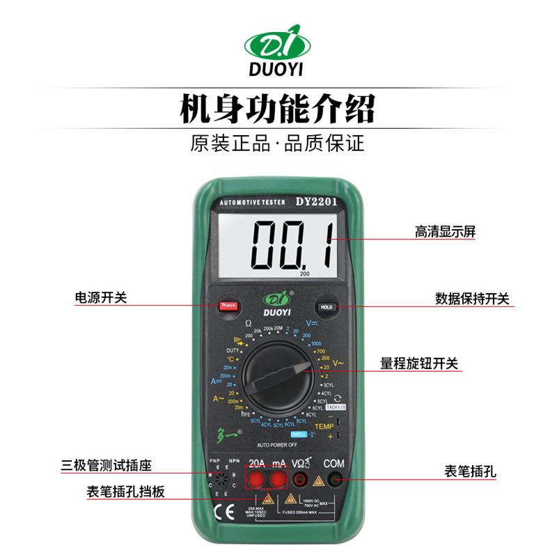 Satu DY2201 Multimeter Mobil Digital Akurasi Tinggi Multifungsi Perbaikan Otomatis Listrik Multifungsi Perbaikan Otomatis
