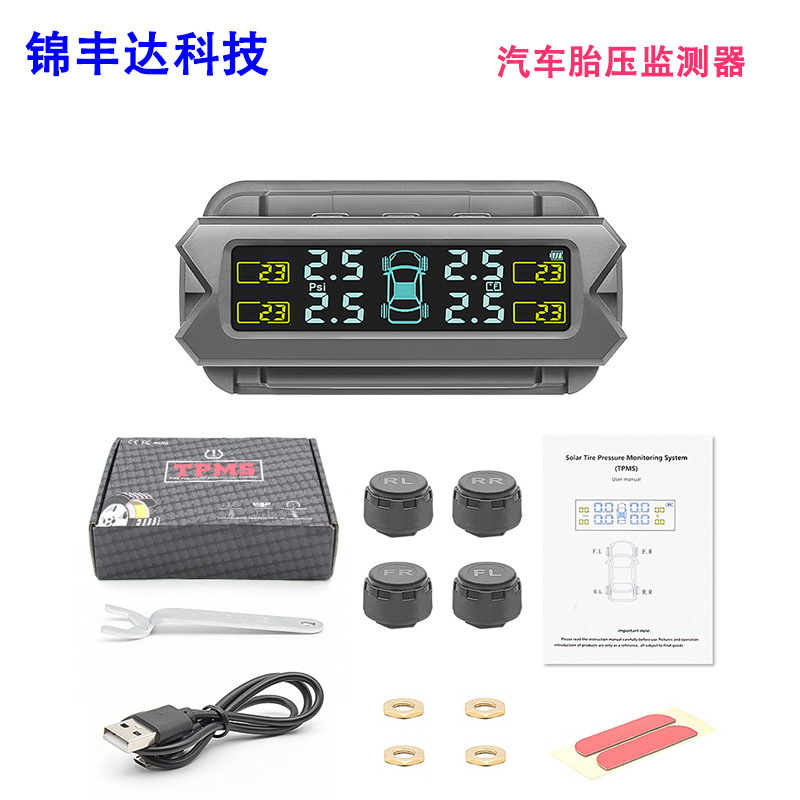 Monitor tekanan ban mobil surya, nirkabel eksternal monitor tekanan ban mobil TY08 TPMS sensor nirkabel deteksi waktu nyata