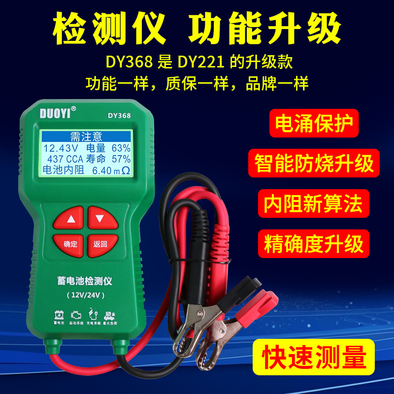 Detektor baterai mobil satu DY368, pendeteksi baterai 12V 24V, kapasitas hidup, penguji ketahanan internal
