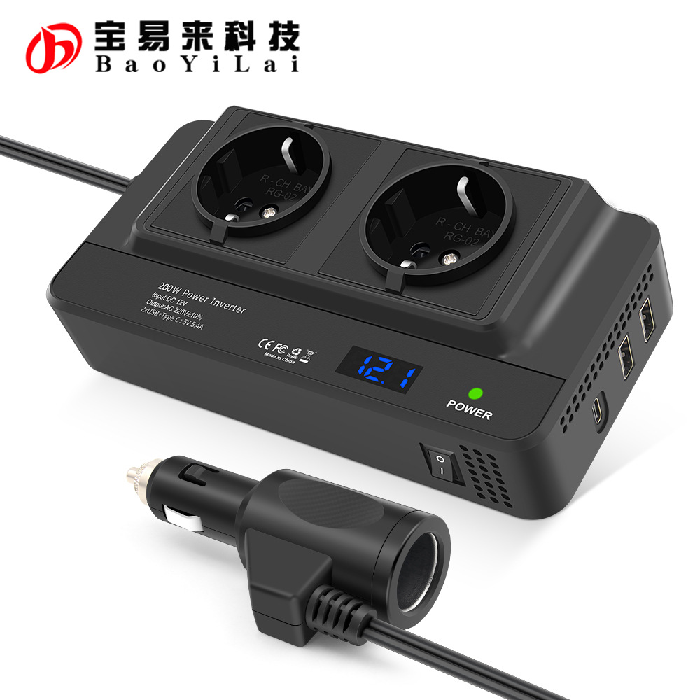 Inverter daya mobil 200W, Inverter daya mobil wifi tipe-c multifungsi, colokan 12V
