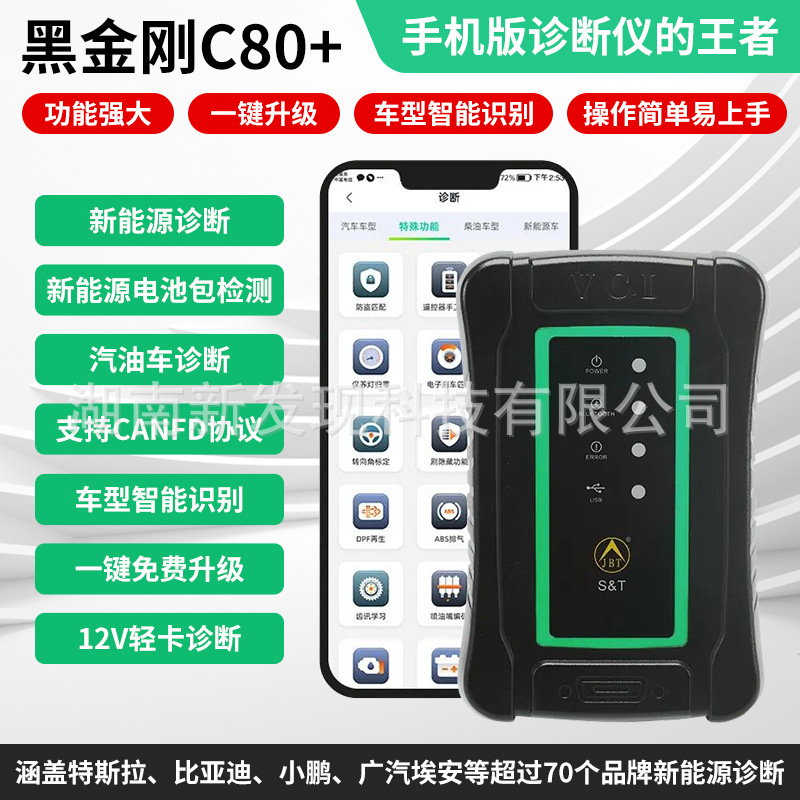 Gallop emas C80 + paket baterai energi baru, instrumen diagnostik mobil berlian hitam, detektor energi baru