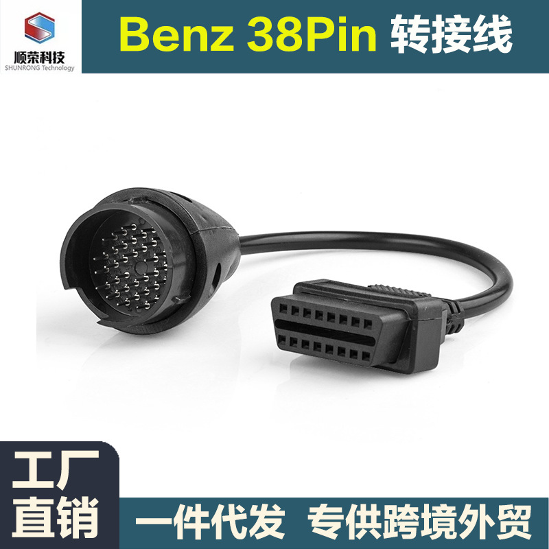Kabel Adaptor OBD2 16-pin untuk Benz 38-pin, Kabel Koneksi Mobil OBD Mercedes-Benz 38-pin