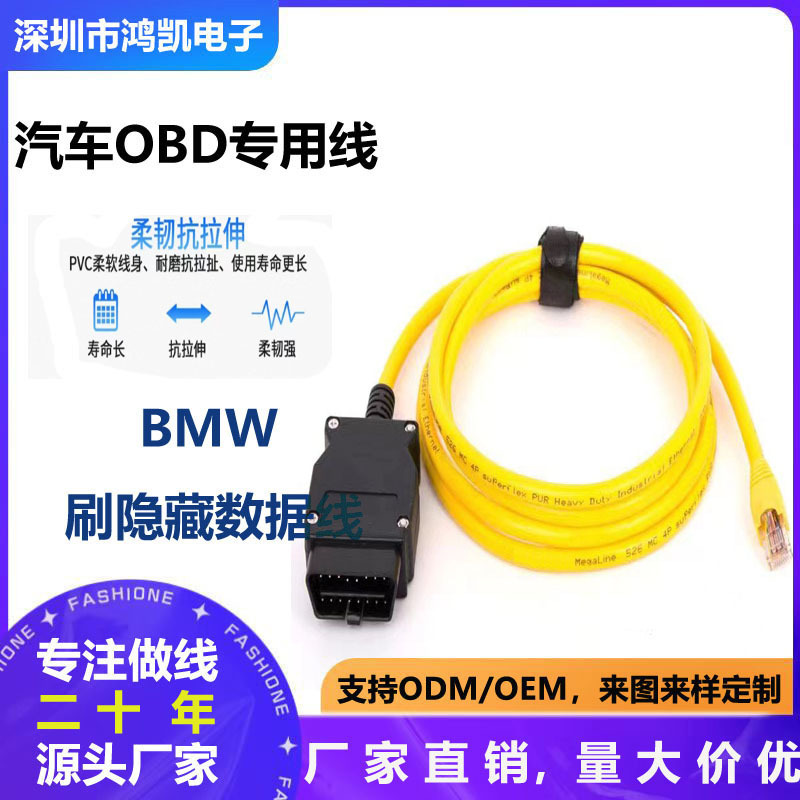 OBD16 kabel diagnostik kendaraan mobil, pendeteksi kabel ekstensi jaringan kabel antarmuka kepala kristal ENET mobil