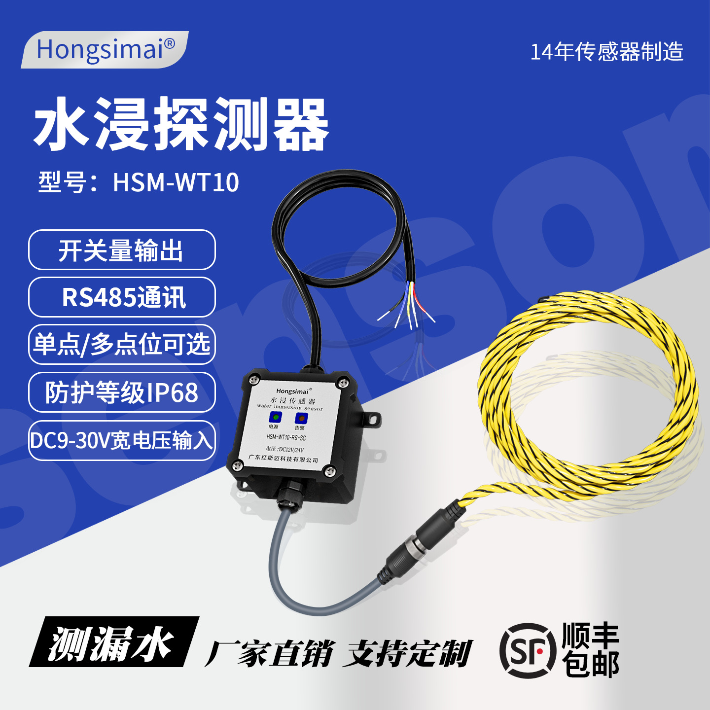 Hongsimai sensor celup air RS485, detektor celup air saklar alarm kebocoran garis deteksi