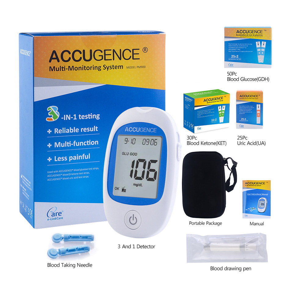 Perdagangan Asing 4 in 1 multifungsi keton darah asam urat glukosa darah penganalisa Inggris keton meter