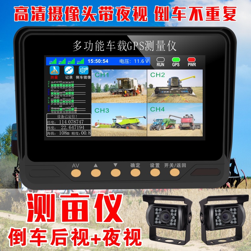 Alat ukur layar 7 inci daya kendaraan, mesin pertanian pemasangan kendaraan, instrumen pembalik GPS pemanen spion dua arah kamera empat arah pasokan pabrik
