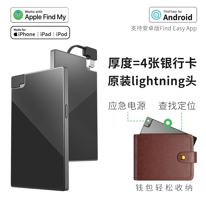 FindMy Autentikasi Pencari Daya Darurat Pencari Posisi Anti Lost Charger Linghtning Ringan dan Kecil