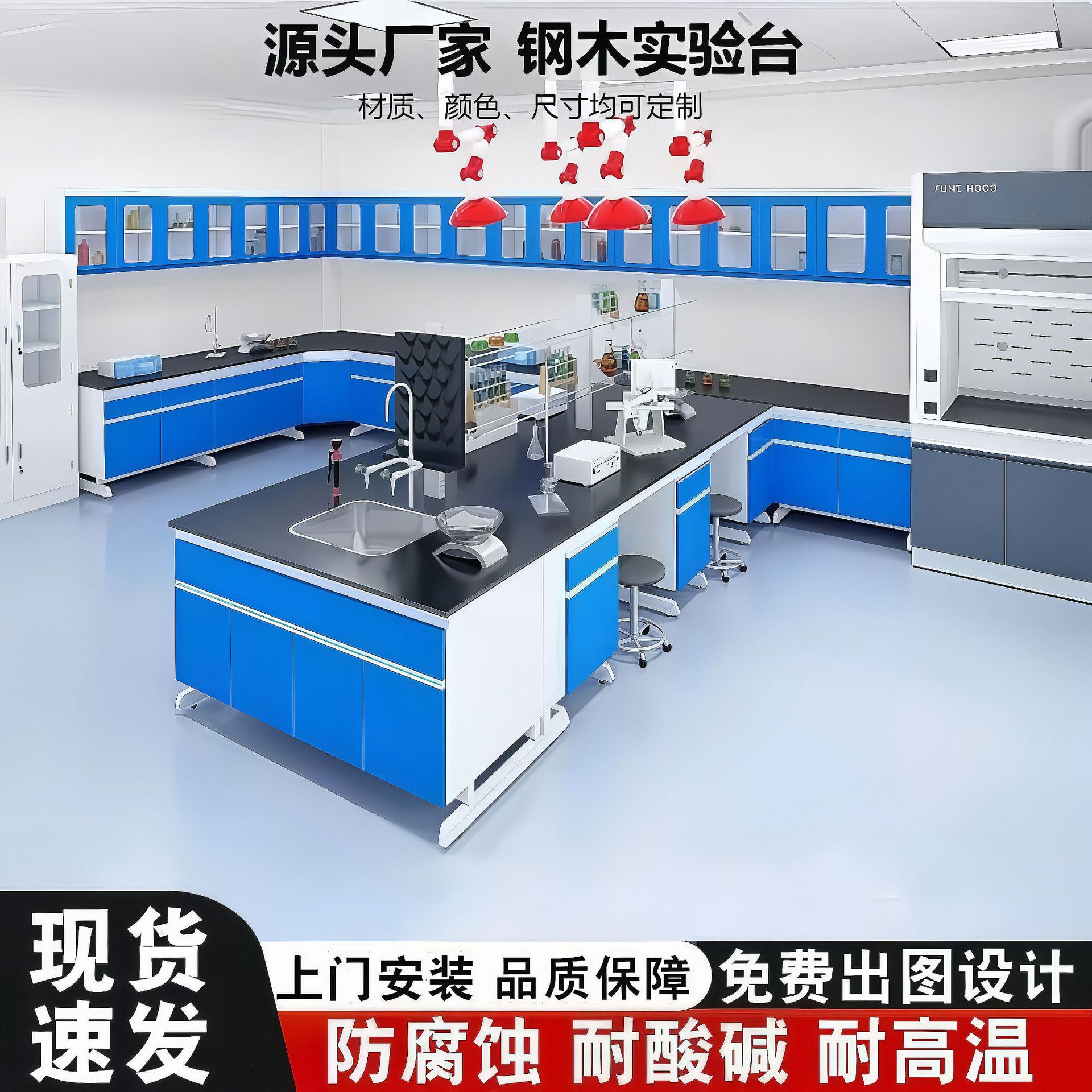 Meja samping tengah baja-kayu, meja eksperimen, rak reagen peralatan, meja tengah, meja kerja laboratorium, meja operasi laboratorium
