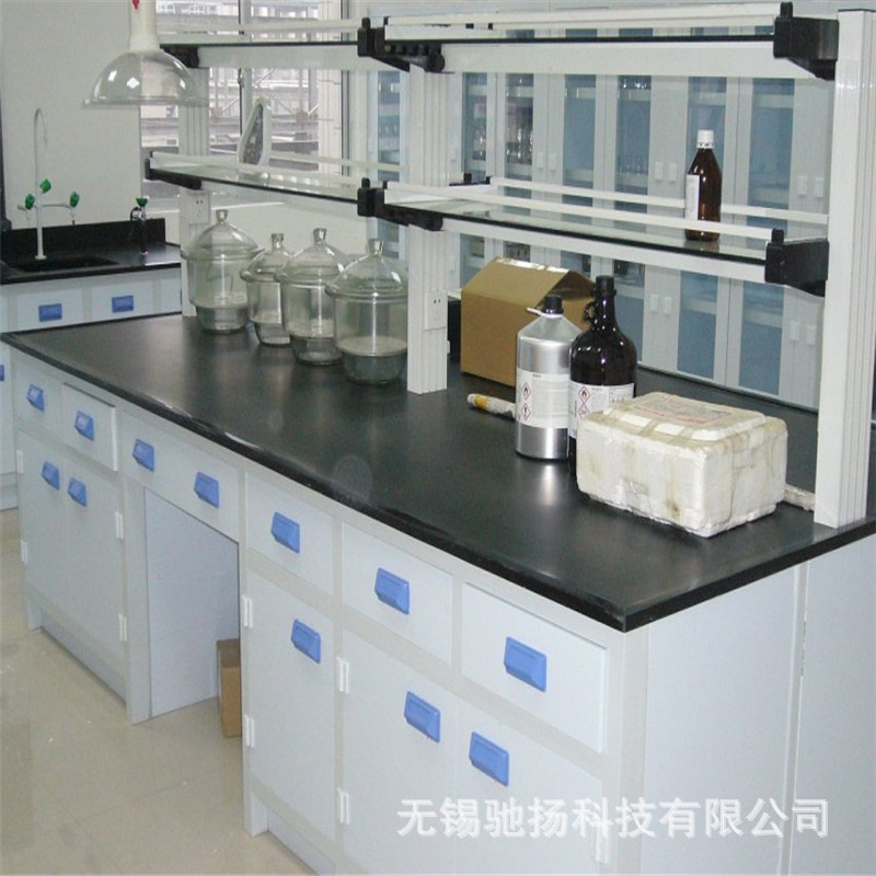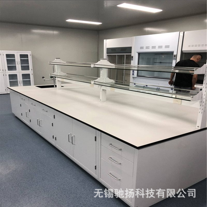 Konsol Laboratorium Kimia produksi papan kimia baja dan kayu meja percobaan meja Tengah Meja samping kabinet putih