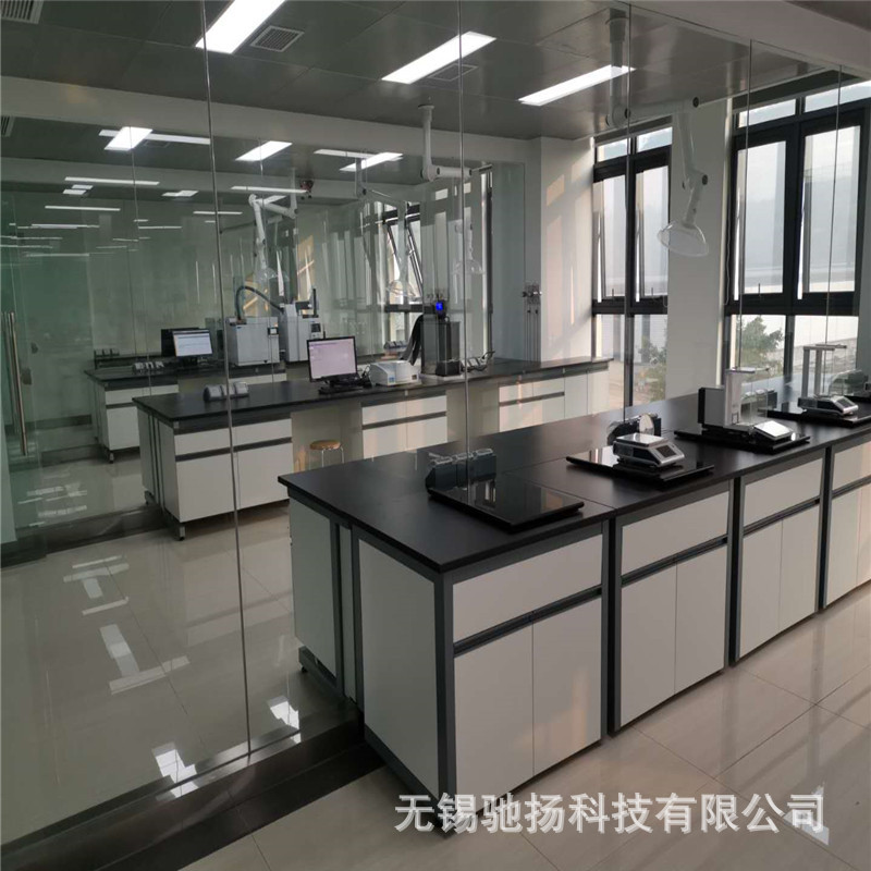 Meja eksperimen pintu tertanam baja penuh meja laboratorium pencocokan warna klasik menempatkan platform operasi uji platform meja sudut
