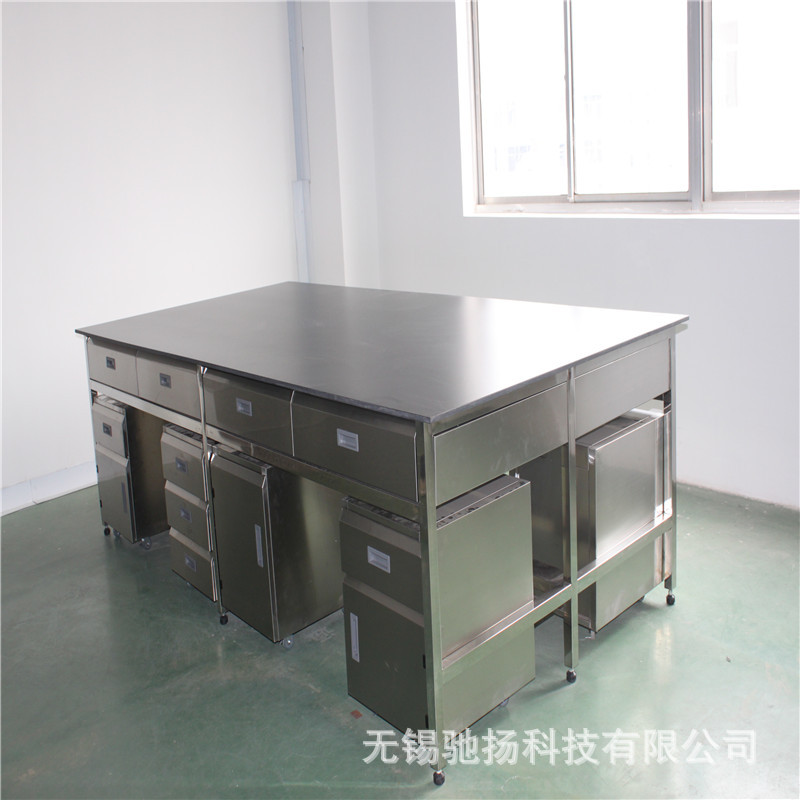 Meja uji baja tahan karat laboratorium produksi konsol kimia meja sisi tengah 304 bahan baja tahan karat