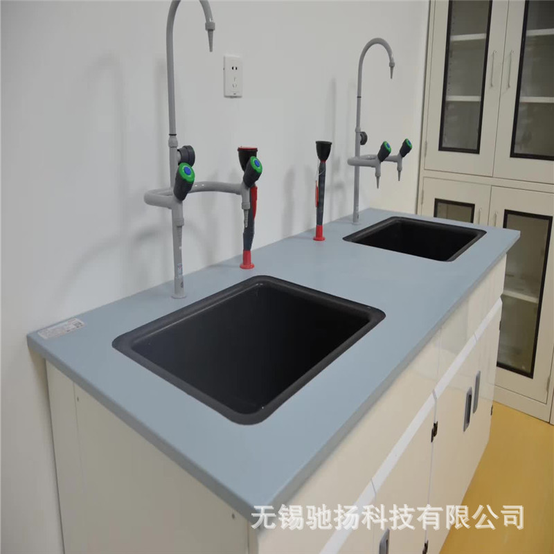Kabinet baskom wastafel laboratorium tahan korosi asam dan alkali dengan keran wastafel tiga kali lipat