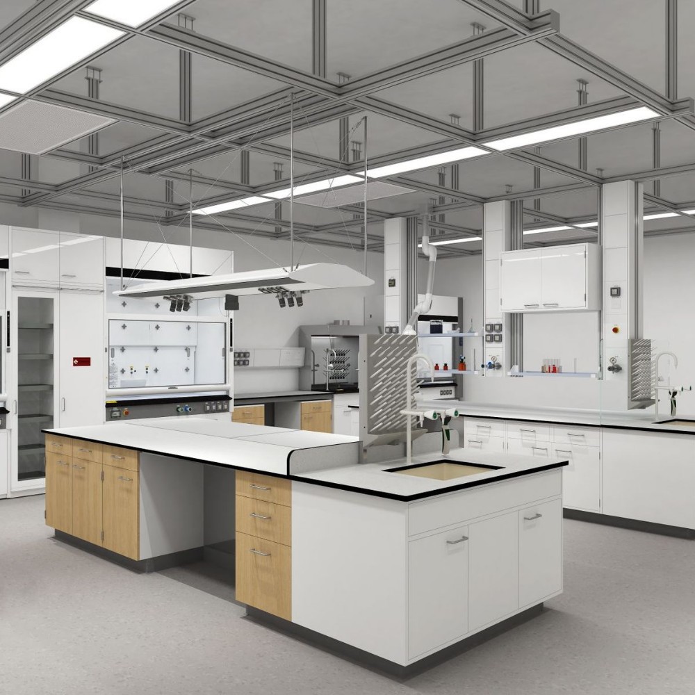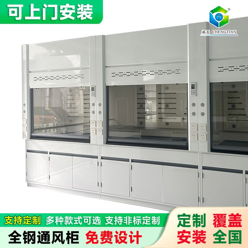 Laboratorium Kimia, kap asap semua baja, bangku laboratorium pusat, desain dekorasi furnitur keseluruhan