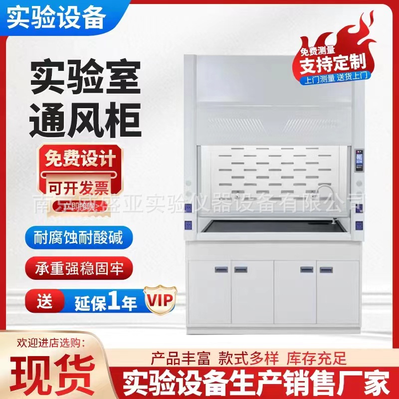Lemari hisap asap laboratorium serba baja dan kayu, kabinet pembuangan, meja eksperimen, kabinet ventilasi, sistem kabinet berdiri di lantai, khusus.