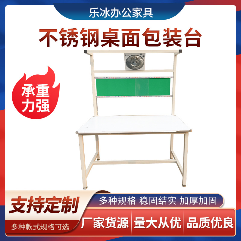Meja kemasan desktop baja tahan karat, dengan kipas elektrik garis perakitan konsol soket anti cap lampu papan belakang