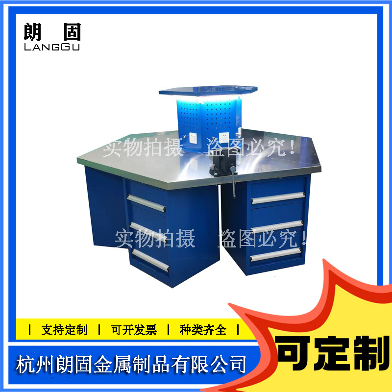Langgu Tang heksagonal ruang latihan siswa, Tang meja kerja enam sisi, konsol tugas berat, Meja alat multi stasiun