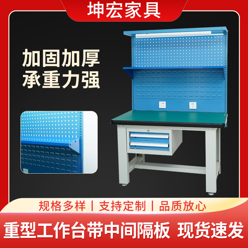 Anti-static Workbench plat besi fitter meja eksperimental bengkel pemeliharaan jalur perakitan tugas berat dengan meja operasi ringan