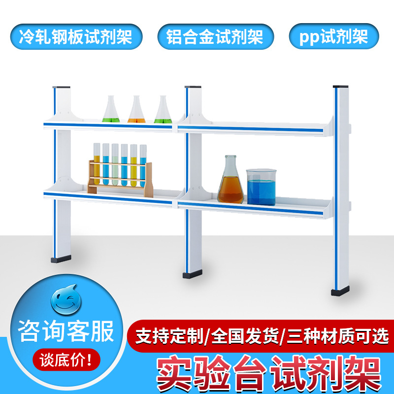 Rak reagen meja laboratorium, rak samping meja Tengah, rak penyimpanan reagen kaca aluminium, kaca baja aluminium, rak reagen PP