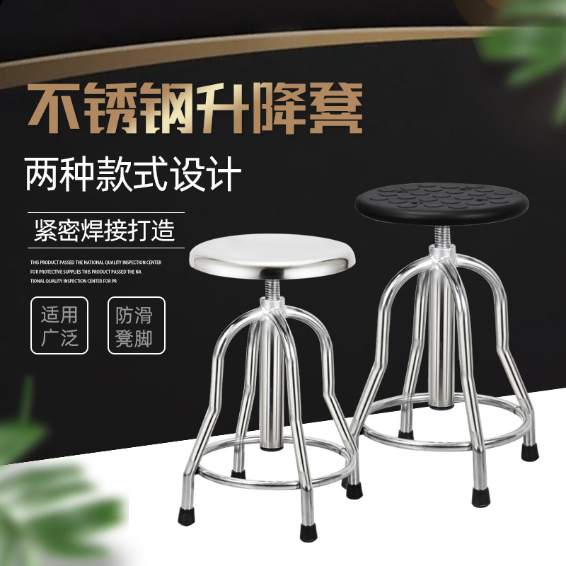 Bangku baja tahan karat dipertebal 304 laboratorium bengkel pabrik garis rakitan bangku bulat kursi angkat spiral kursi antistatis
