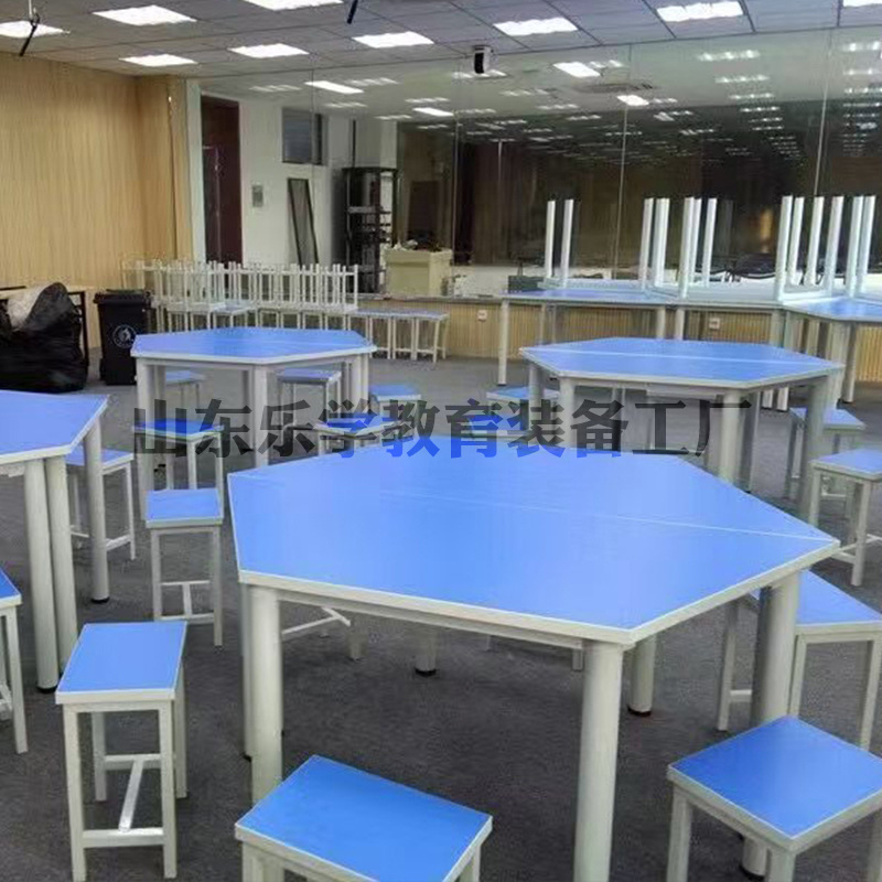 Meja siswa heksagonal meja pelatihan dengan roda bergerak meja hosting pertemuan mosaik multimedia meja kombinasi multifungsi