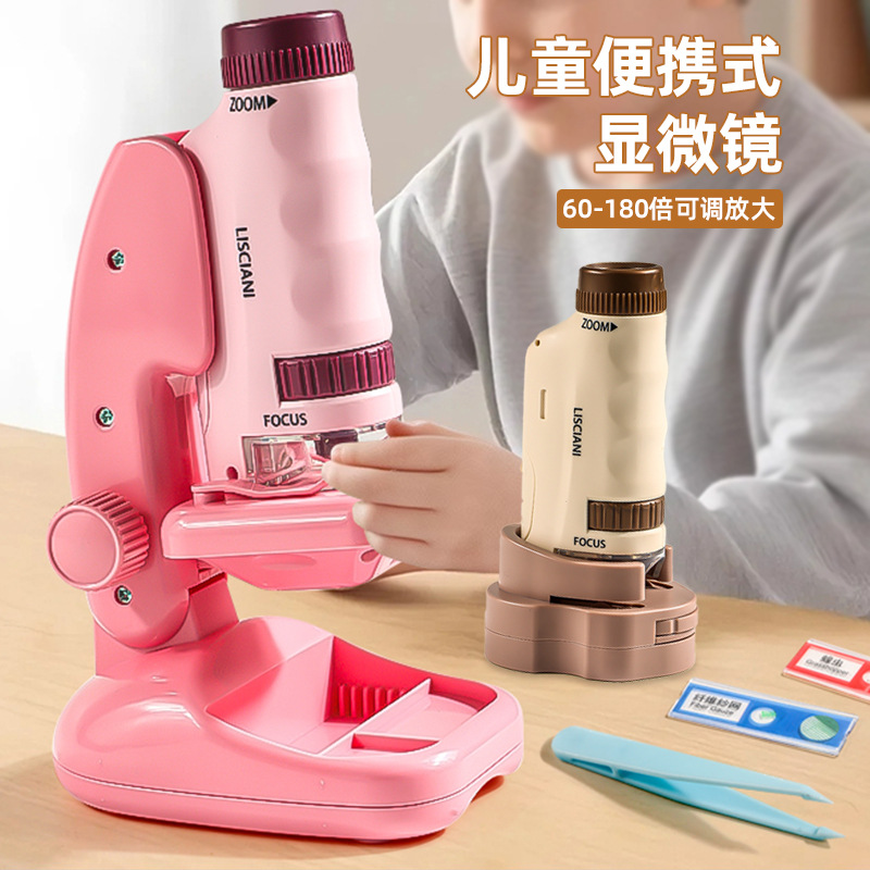 Anak-anak genggam portabel mikroskop kartun mini 3-in-1 mikroskop TK percobaan sains set grosir