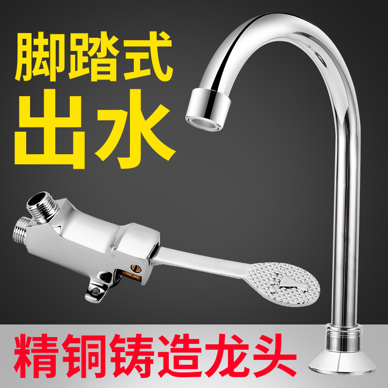 Keran pedal tembaga saklar keran dingin tunggal, keran wastafel pabrik makanan laboratorium rumah sakit