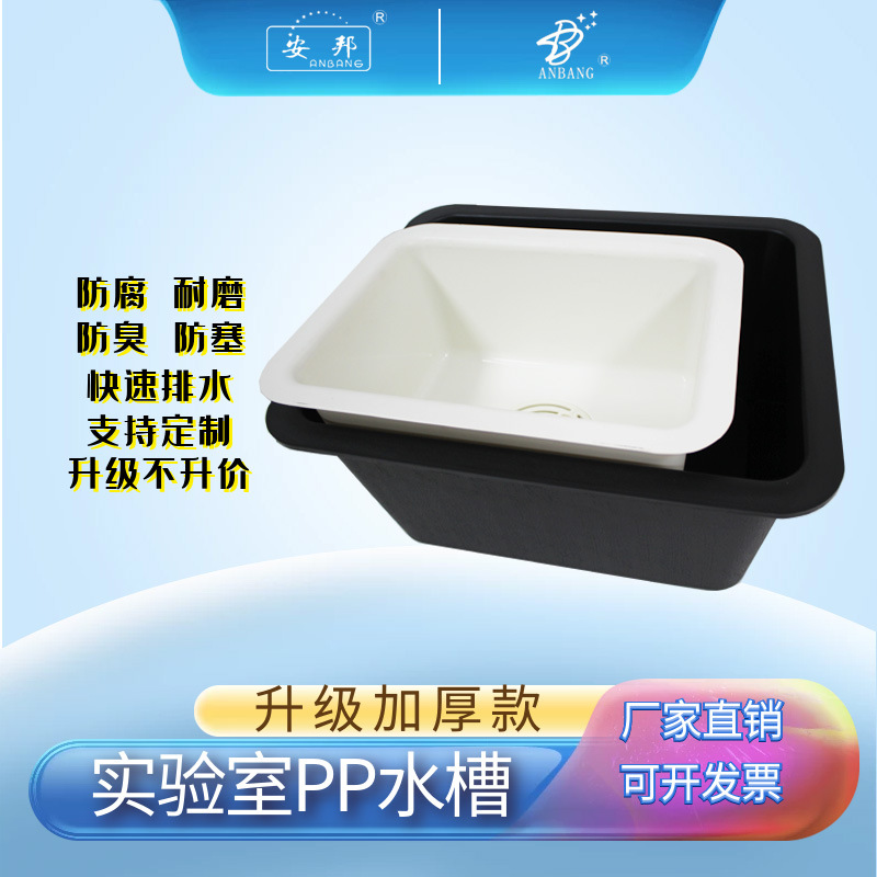 Wastafel PP laboratorium, bak laboratorium, aksesoris wastafel plastik, dilengkapi pipa pembuangan, khusus untuk laboratorium