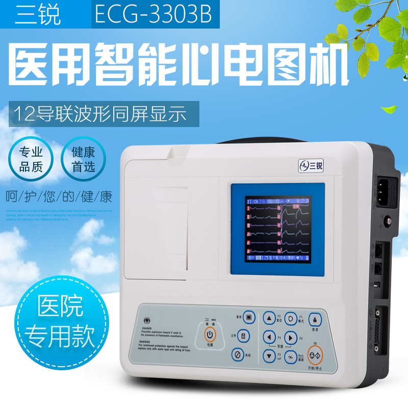 Sanrui EKG ECG-3303B Tiga Dua Belas 12 Panduan Analisis Otomatis Detektor Portabel