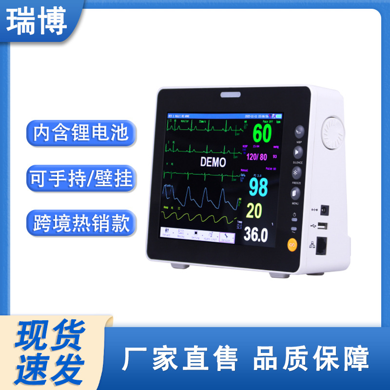 Ruibo PM-9000 8 inci cermin multi-parameter, Portabel medis pemantau ambulans transportasi monitor ECG baru