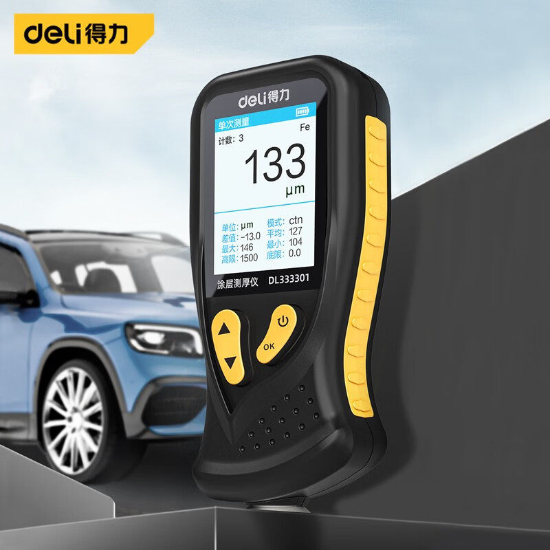 Deli pengukur ketebalan lapisan Listrik presisi tinggi film cat mobil instrumen deteksi ketebalan film cat mobil