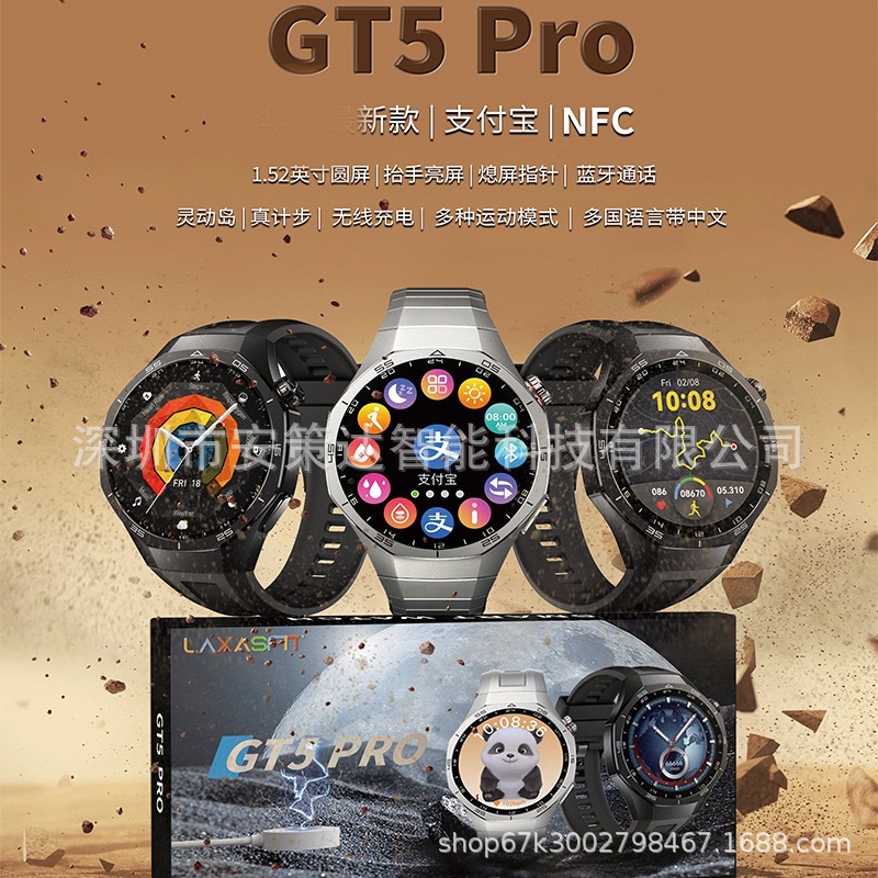 Jam Tangan Pintar GT5Pro Layar Bulat Pengisian Nirkabel Offline Pembayaran NFC Bluetooth Panggilan Pemantauan Kesehatan Langkah Olahraga