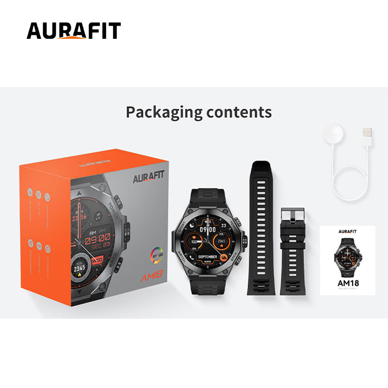 AURAFIT AM18 Spot AMOLED Layar Bluetooth Panggilan Denyut Jantung Oksigometer Langkah Cuaca Jam Pintar Tidur