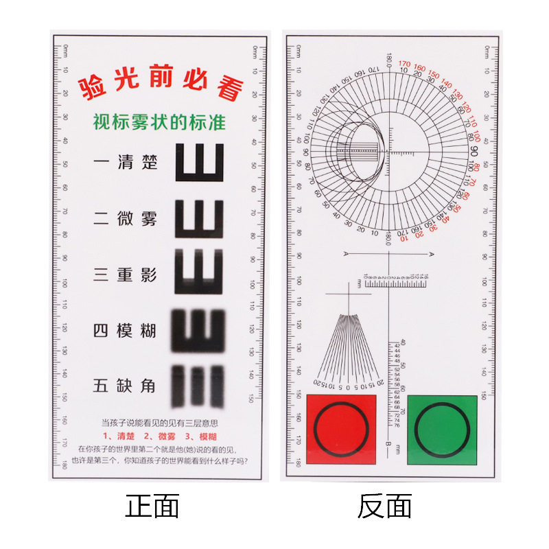 Kartu Visual pengujian tambahan optometri anak-anak kartu visual astigmatisme merah dan hijau kartu uji optometri grafik visual