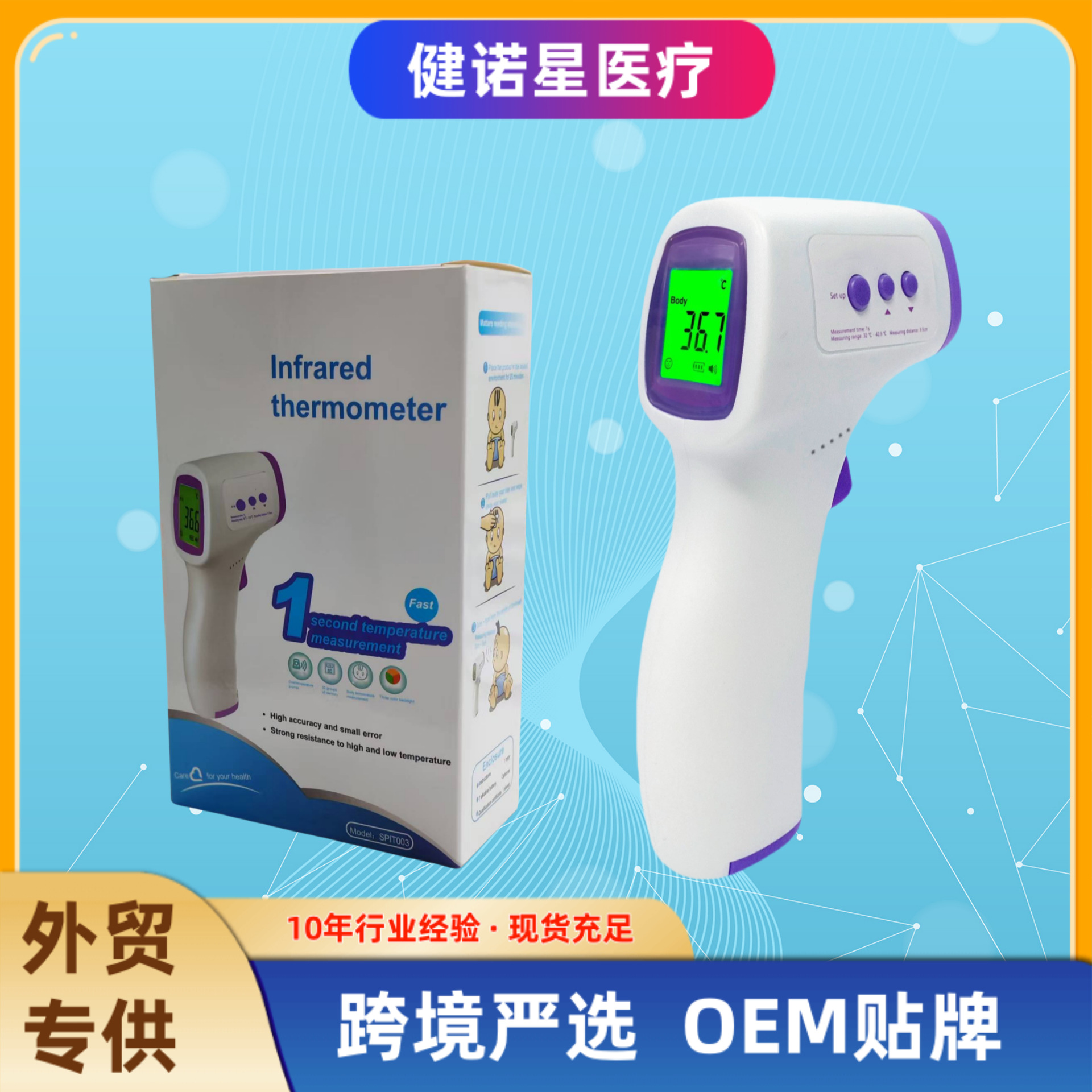 Amazon termometer inframerah cerdas, termometer rumah tangga non-kontak, termometer pengukur satu klik bersertifikasi CE FDA