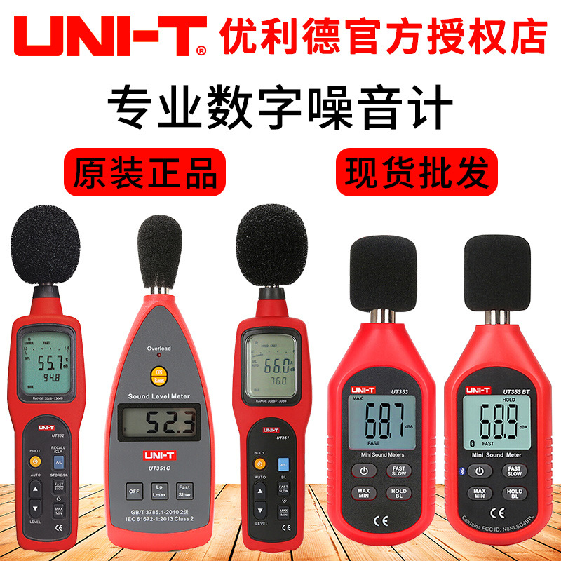 Unide pengukur kebisingan distributor UT351, detektor profesional laboratorium pengukur level suara Bluetooth lingkungan