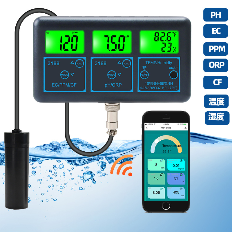 Monitor kualitas air Online 7-in-1 hidroponik EC konduktivitas tangki ikan pembiakan PH ORP meter WiFi graffiti
