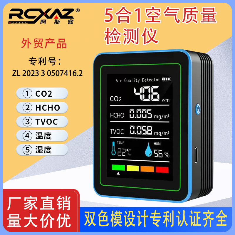 Baru 5 in 1 Detektor Karbon Dioksida Mendeteksi Formaldehida Dekorasi Rumah Baru TVOC Suhu Kelembaban CO2